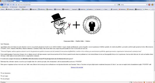 Proprio la home page dell’azienda sarebbe stata sostituita con un comunicato congiunto firmato da Anonymous e LulsZec in cui si accusa la Vitrociset di non meritare i soldi pubblici che le vengono corrisposti per occuparsi della "sicurezza e affidabilità delle infrastrutture/sistemi dei più importanti enti e istituzioni del nostro Paese".