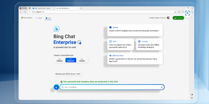 Bing Chat Enterprise funziona in modo simile alla versione di Bing Chat per l’utenza consumer ma offre maggiori garanzie dal punto di vista della protezione dei dati utilizzati nel corso delle sessioni di lavoro. Non è un mistero infatti che alcune compagnie abbiano vietato l’uso di chatbot ai dipendenti per evitare la fuoriuscita di informazioni riservate.