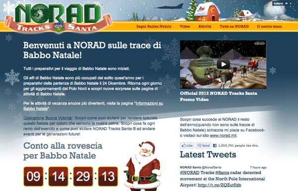 Il NORAD (North American Aerospace Defense Command), cioè l’organizzazione il cui compito è quello di scrutare il cielo alla ricerca di oggetti volanti (UFO compresi), effettuerà in questi giorni un’operazione di monitoraggio speciale nella speranza di individuare Babbo Natale e la sua slitta.
