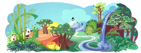 Per l’occasione la scritta "Google" è stata completamente rimossa, al suo posto hanno trovato spazio immagini dedicate alla natura con tanto di foreste, cascate e fiumi; il tutto in uno stile molto "cartoon" tanto simpatico quanto semplice ed efficace.