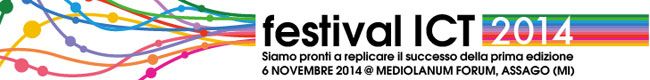 Giovedì 6 Novembre si terrà il festival ICT 2014, il nuovo palcoscenico ICT italiano che per questa seconda edizione attende 1000 visitatori da tutt’Italia. Il programma dell’evento prevede 70 interventi su varie tematiche, un’Arena con 27 community ICT con le quali discutere e confrontarsi ed un’area con 64 prestigiosi Sponsor coi quali entrare in contatto.
