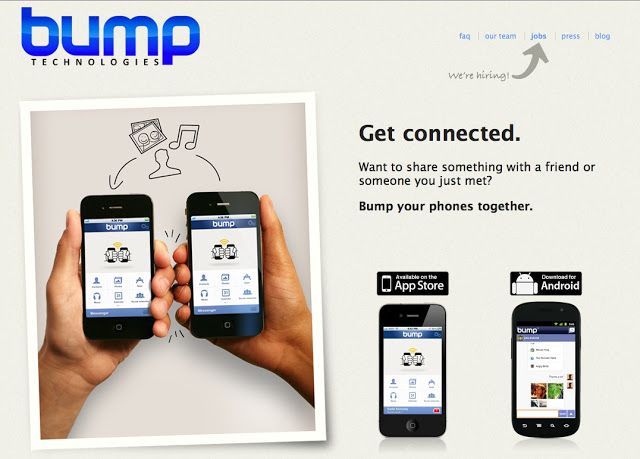 Bump è una startup nel vero senso della parola, questo perché si tratta della classica azienda che è riuscita ad attirare venture capitals (circa 20 milioni di dollari) sulla base di una buona idea, ad oggi la sua piattaforma raccoglierebbe oltre 100 milioni di utenti.