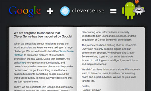 Mountain View ha recentemente acquistato la società Cleversense, un’azienda il cui core business è concentrato sulla creazione di soluzioni mirate a suggerire attività commerciali e d’intrattenimento agli utenti sulla base delle informazioni personali disponibili.