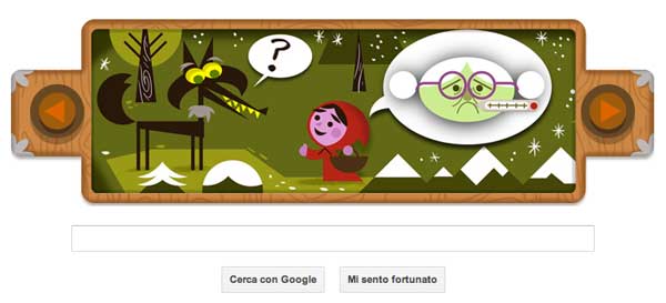 Google ha deciso di dedicare un Doodle al duecentesimo anniversario delle fiabe scritte dai fratelli Grimm, il logo modificato del motore di ricerca presenta quindi uno slider interattivo grazie al quale sarà possibile scorrere le scene di uno dei titoli più noti degli autori celebrati: Cappuccetto rosso.