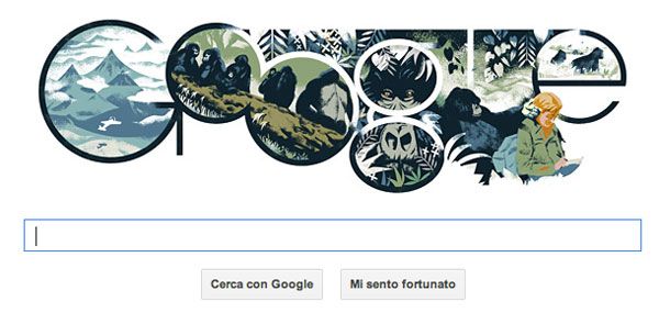 Il Doodle del 16 gennaio 2014 è stato dedicato da Mountain View a Dian Fossey, nota come la "signora dei gorilla", zoologa statunitense nata a San Francisco nel 1932 e morta in Ruanda nel 1985 in seguito ad un brutale omicidio sul quale ancora oggi non sarebbe stata fatta chiarezza.