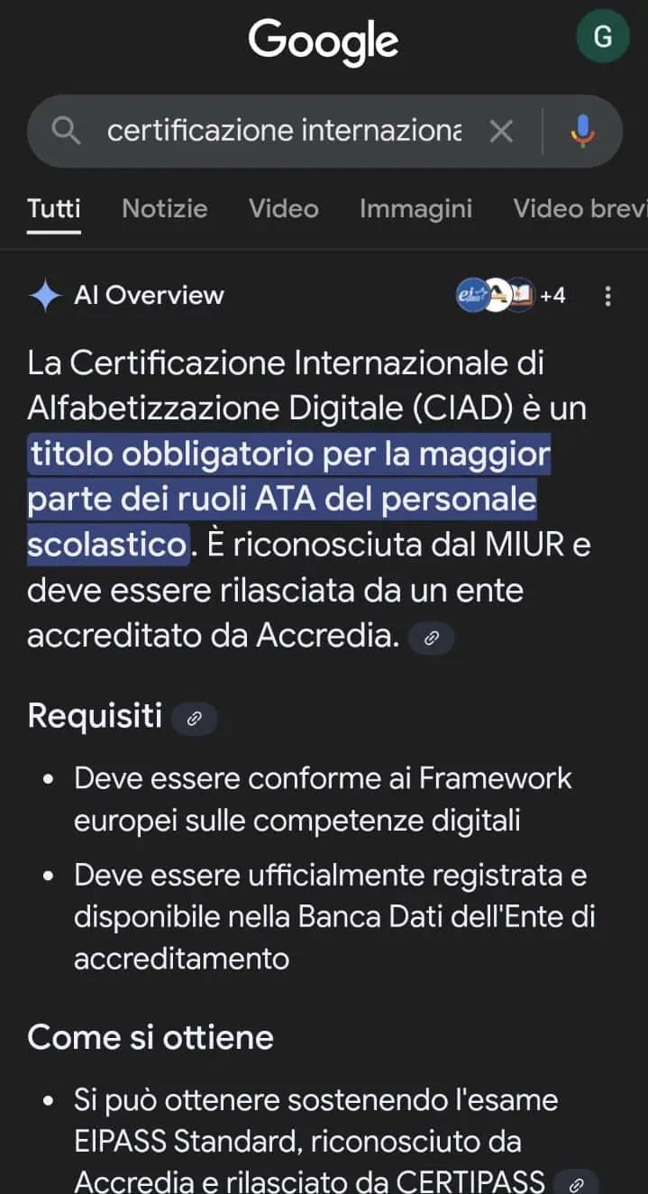 Le AI Overviews non sono ancora ufficialmente disponibili in numerosi paesi europei, tra cui l’Italia, tuttavia, recenti osservazioni indicano che Google starebbe testando questa funzionalitร in diverse nuove nazioni. Per quanto riguarda il nostro paese, un utente su X ha segnalato lโapparizione delle AI Overviews sul dispositivo Android del padre (segue uno screenshot):