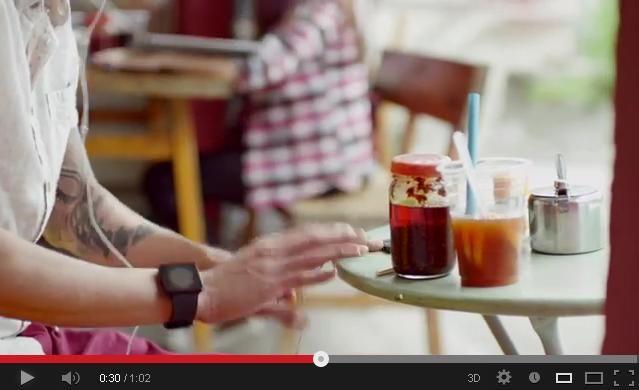 Lo spot dura all’incirca un minuto e, vero la metà, compaiono le braccia tatuate di un giovane seduto ad un tavolo, aguzzando la vista si nota un orologio sul polso destro dotato di una particolare forma squadrata che alcuni avrebbero identificato come la scocca dell’iWatch.