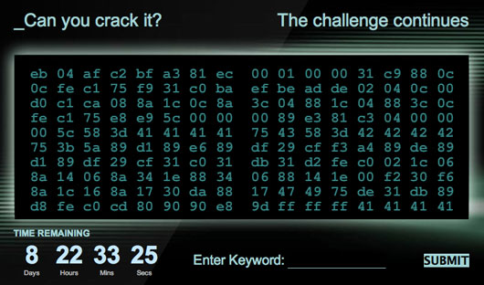 L’inziativa prende il nome di "Can you crack it?" (Puoi violarlo?), attraverso di essa i super smanettoni vengono sfidati a decifrare un codice formato da ben 160 coppie composte da lettere, numeri o da entrambi; la soluzione potrà essere inviata tramite l’apposito campo "Enter Keyword".