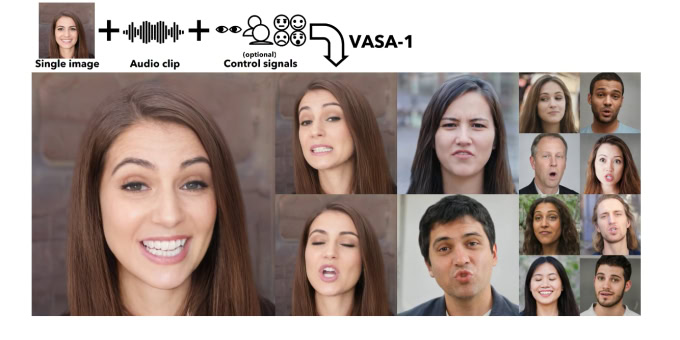 VASA-1 è un nuovo progetto di Microsoft finalizzato a sfruttare le Intelligenze Artificiali Generative per animare le immagini fotografiche. Parliamo nello specifico di "Lifelike Audio-Driven Talking Faces" generate in tempo reale, quindi date l’immagine di un volto e un clip audio la piattaforma è in grado di creare un video dove la persona ritratta parla o canta.