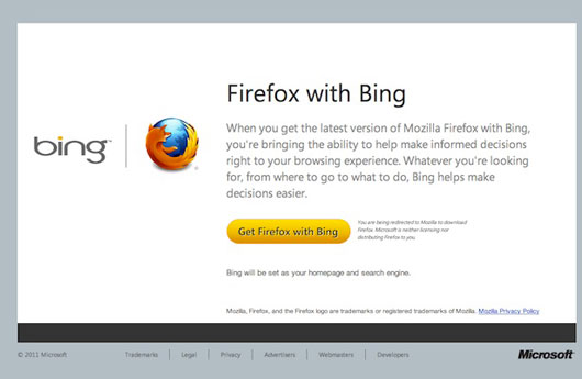 Firefox with Bing è il nome di un progetto che suscita qualche curiosità per via del fatto di essere nato in seguito ad una partnership tra due organizzazioni antitetiche negli intenti: la casa di Redmond, alfiere del closed source, e la Fondazione Mozilla, promotrice del software libero.