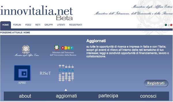 E’ stato presentato oggi il sito web Innovitalia.net nato dalla collaborazione tra due ministeri – Esteri ed Istruzione, Universita’ e Ricerca – e RAI Educational. L’idea di base di questo progetto è realizzare una sorta di facebook per i "cervelli italiani", un luogo virtuale dove ricercatori e scienziati italiani sparsi per il mondo potranno entrare in contatto e fare Rete.