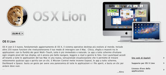 Oltre alle nuove features, Lion porta con se anche un’importante novità relativa al metodo di distribuzione adottato: il sistema operativo, dal contenuto costo di 23,99 dollari, sarà infatti acquistabile unicamente on-line e non verrà più fornito tramite un supporto fisico.
