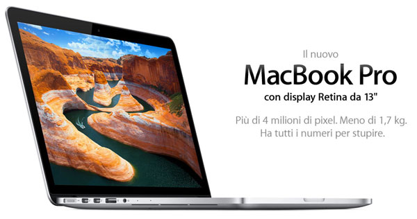 Nel corso dello stesso evento che ha visto il lancio dell’iPad Mini, la Casa di Cupertino ha presentato anche il suo nuovo modello di MacBook Pro da 13 pollici; la notizia più importante in questo caso sta nell’introduzione della tecnologia Retina per il display del dispositivo.