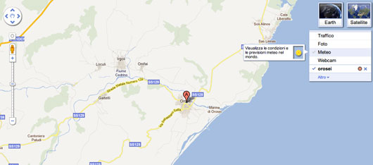 Le nuove funzionalità di Google Maps (meteo e traffico) possono essere attivate mediante il box in alto a destra mettendo il segno di spunta sulla voce corrispondente.