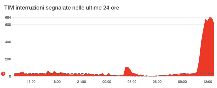 Sul sito Downdetector le segnalazioni si moltiplicano creando un vero e proprio picco intorno alle 11 della mattinata odierna. Delle segnalazioni ricevute dal sito circa l’82% riguarderebbe "INternet fisso" a conferma che il problema sembra riguardare prevalentemente il servizio di fibra e ADSL (le problematiche da mobile sembrano residuali e potrebbero essere considerate "fisiologiche").