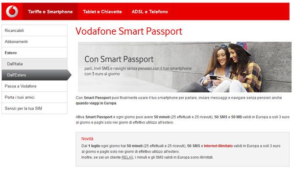 Smart Passport è una proposta del carrier Vodafone che gli abbonati potranno attivare allo scopo di navigare all’estero senza limiti, l’opzione prevede il pagamento di una tariffa pari 3 Euro al giorno e garantisce la copertura del servizio in roaming per 40 paesi differenti.