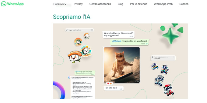 Menlo Park non ha fornito delle tempistiche precise riguardo al rilascio europeo dei nuovi strumenti basati sulle AI, il gruppo californiano è comunque chiaramente intenzionato ad adottare queste tecnologie su tutte le piattaforme del suo network. La generazione di immagini ora integrata in WhatsApp potrebbe quindi arrivare presto anche su Facebook, Instagram e Messenger.