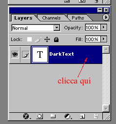 Se invece vuoi modificare solo il testo (invece DarkTex vuoi ad esempio scrivere bagliore) è sufficiente selezionare nuovamente lo strumento testo cliccare su DarkText e riscrivere. Gli effetti saranno mantenuti!