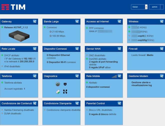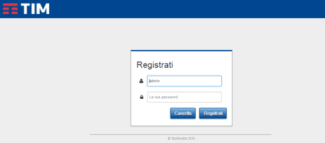 Se siete clienti TIM ed utilizzate il loro router, dopo aver digitato l’indirizzo 192.168.1.1 (attenzione NON 192.168.I.I, le ultime due non sono "I" ma degli "1") vedrete una schermata simile a questa: