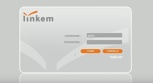 Digitando 192.168.1.1 da una rete governata da un router di Linkem visualizzeremo nella finestra del browser una finestra d’accesso come la seguente: