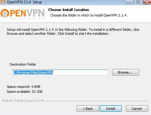 Prima di tutto è necessario installare OpenVPN, ad esempio tramite l’installer Windows scaricabile gratuitamente a questa pagina. Sarà sufficiente a questo punto seguire la procedura guidata, eventualmente modificando alcuni parametri come la directory di installazione del programma, se necessario.