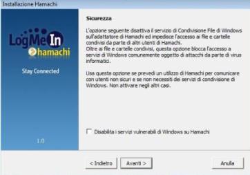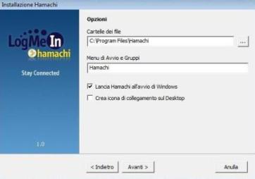 Valutiamo più nel dettaglio la procedura di installazione in ambiente Windows. Sono necessarie alcune semplici scelte, come ad esempio indicare la cartella in cui verrà installato il programma, decidere se avviare il programma all’avvio di Windows e se posizionare un collegamento ad Hamachi sul Desktop: