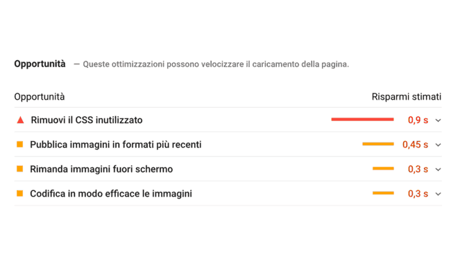 L’avviso Rimuovi CSS inutilizzato รจ uno dei piรน frequenti su Google Lightspeed, cioรจ il tool gratuito attraverso il quale i webmaster possono testare la velocitร del proprio sito web ottenendo consigli su come migliorarla.