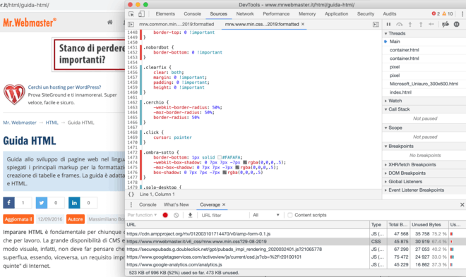 Effettuare la pulizia manuale dei fogli di stile CSS grazie ai DevTools di Chrome