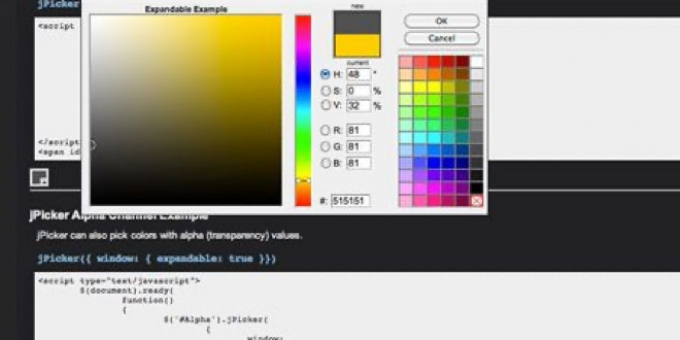 jPicker è una soluzione completa, ma allo stesso tempo leggera, per l’integrazione di un color picker all’interno di una pagina web. E’ possibile settare il colorpicker come inline (sempre visibile) oppure a comparsa (ad esempio dopo il click sul selettore colori). Le opzioni sono molteplici. Da segnalare che la finestra del controllo è draggable e pertanto può essere comodamente spostata all’interno della pagina.