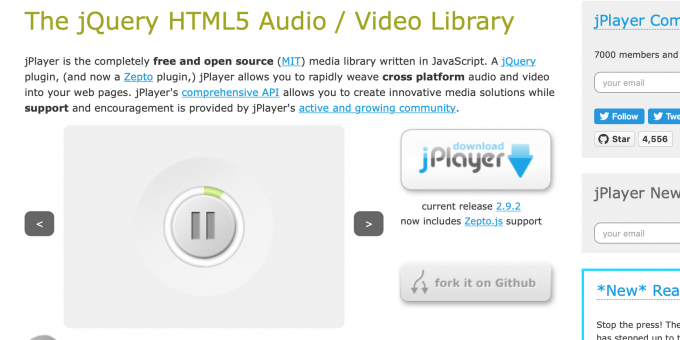 jPlayer รจ una libreria multimediale open source scritta in JavaScript grazie alla quel potrete inserire, in tutta semplicitร , video e audio all’interno delle vostre pagine HTML5. jPlayer รจ disponibile anche sotto forma di plugin per jQuery.