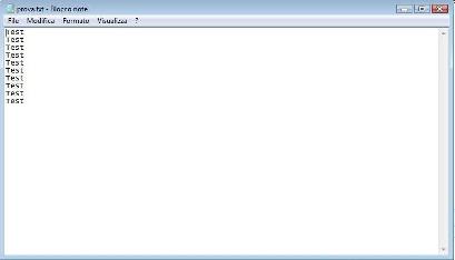 Verifichiamo il corretto funzionamento del programma visualizzando, dopo l’esecuzione dello stesso, il contenuto del file prova.txt.