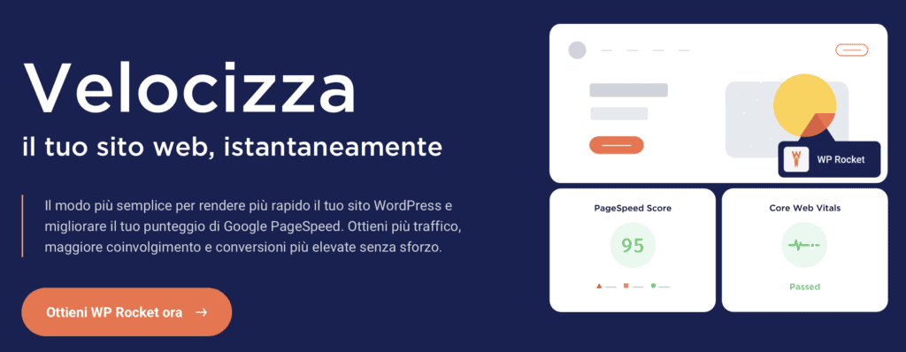 Progettato per WordPress e sempre aggiornato per stare al passo con i piรน recenti standard sulle prestazioni web, WP Rocket migliora nettamente le prestazioni complessive del sito web raggiungendo punteggi migliori su PageSpeed Insights anche senza effettuare configurazioni avanzate. La gran parte delle ottimizzazioni, infatti, viene effettuata automaticamente.