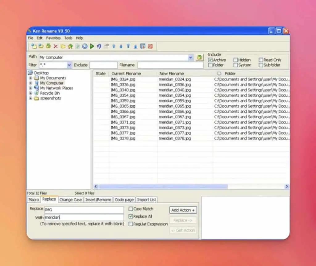 Ken Rename è un programma che consente di creare delle batch grazie alle quali effettuare veloci operazioni per rinominare i file. Le procedure di rinomina potranno essere effettuate sulla base di regole definite preventivamente dagli utilizzatori. Inoltre, sarà possibile creare macro personalizzate e visualizzare un’anteprima delle operazioni effettuate, offrendo un’esperienza utente altamente personalizzabile.
