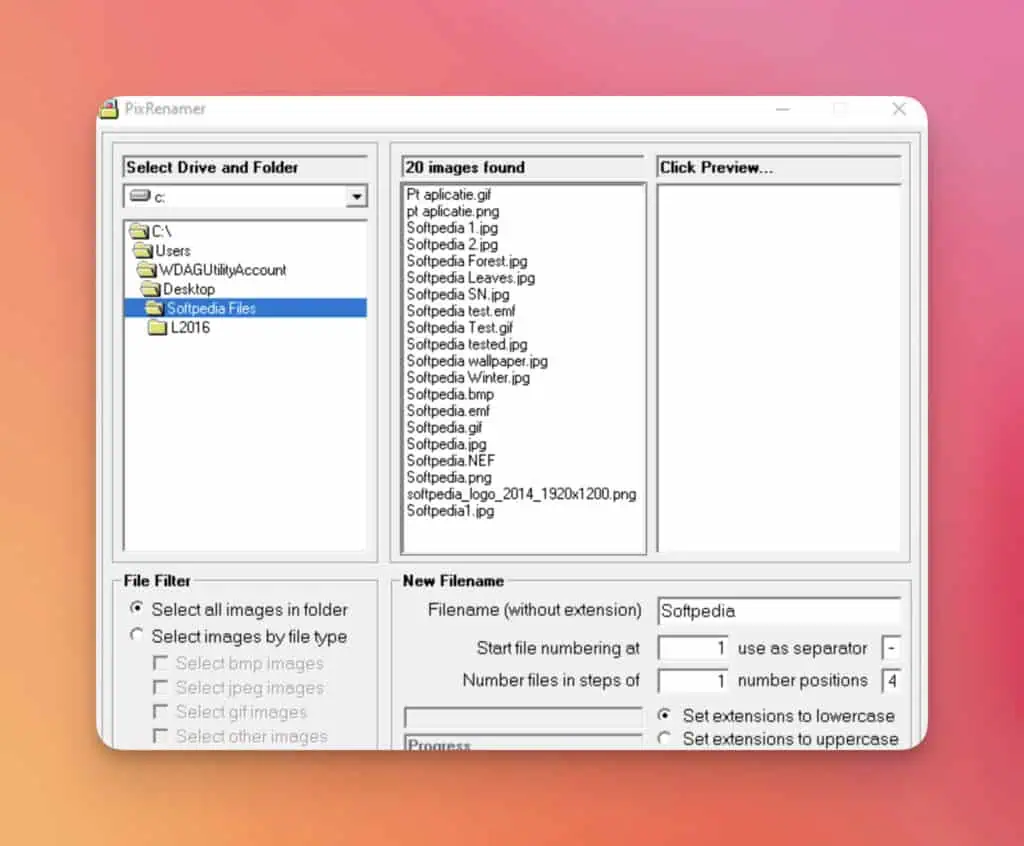 PixRenamer è uno strumento semplice per effettuare (semi)automaticamente operazioni di rinomina di file grafici all’interno di una o più cartelle indicate dall’utilizzatore. Sarà possibile sostituire i nomi delle immagini con altri definiti arbitrariamente e visualizzare un’anteprima per decidere se confermare le operazioni effettuate, garantendo una gestione efficiente e libera da errori.
