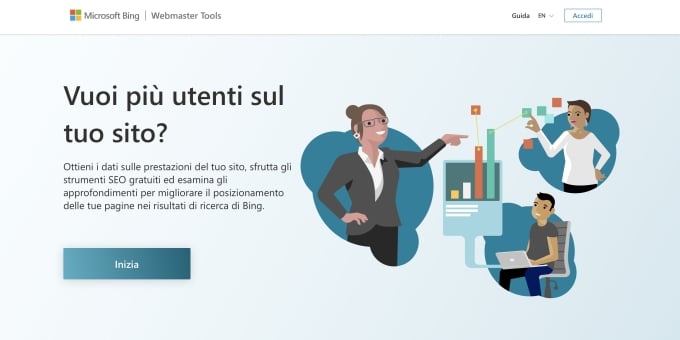 Bing Webmaster Tools è la console ufficiale di Microsoft dedicata ai proprietari e gestori di siti web. Gli strumenti SEO di Bing Webmaster Tools consentono di esplorare i dati del tuo sito, analizzarne i backlink, gestire le parole chiave e altro ancora per aiutare il tuo sito web a migliorare il posizionamento delle tue pagine web nei risultati di ricerca di Bing.
