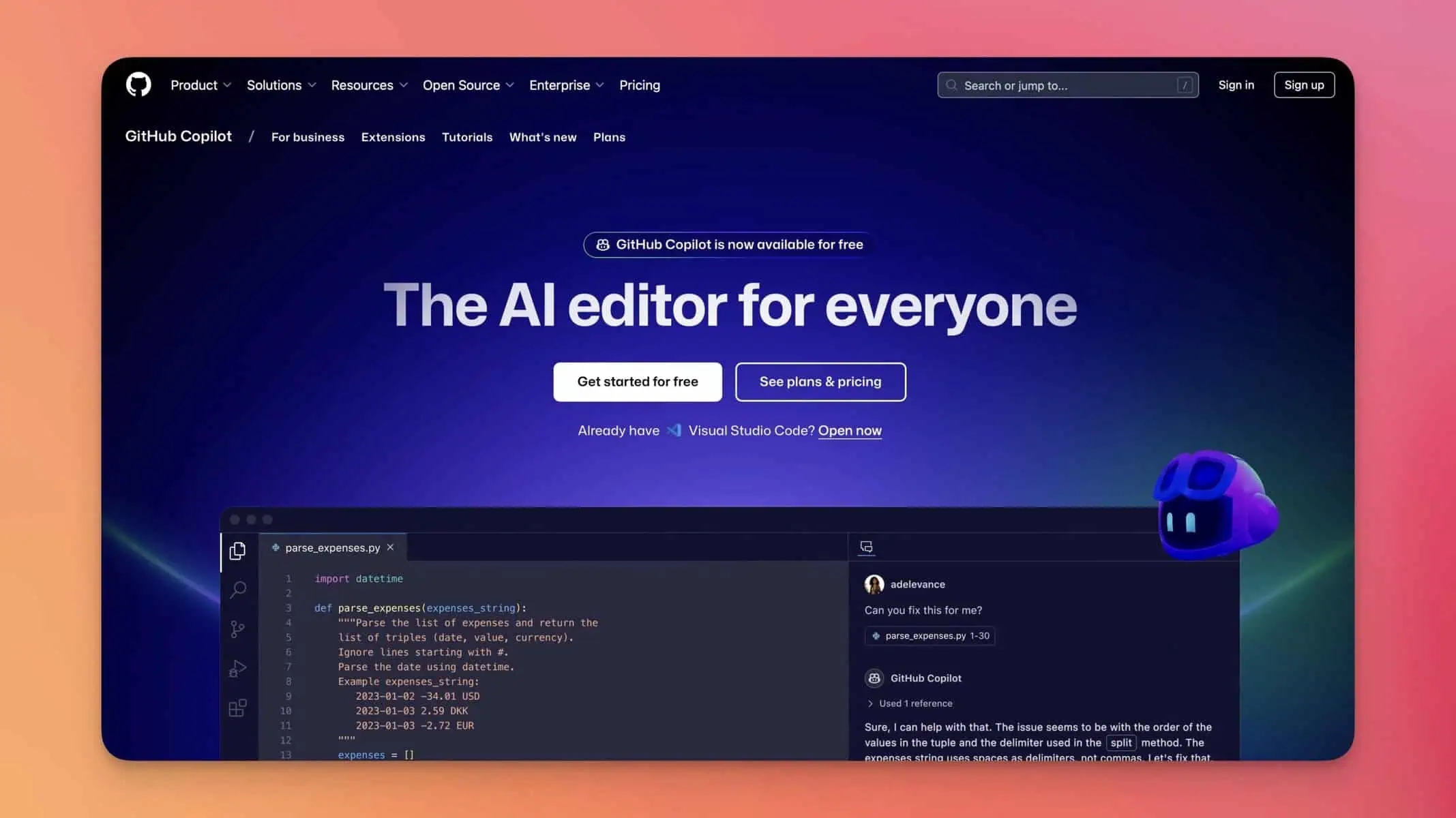 GitHub Copilot è una delle soluzioni più integrate negli ambienti di sviluppo e utilizza il modello Codex, una versione ottimizzata dei modelli OpenAI pensata specificamente per la programmazione. A differenza di ChatGPT, Copilot funziona come un assistente in tempo reale direttamente nell’editor di codice, suggerendo completamenti automatici mentre lo sviluppatore scrive.