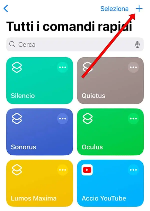 Tocca il pulsante + nellโangolo in alto a destra per creare un nuovo comando.