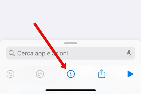 Ora clicca sul simbolo con la “i” che nell’iPhone si trova al centro in fondo.