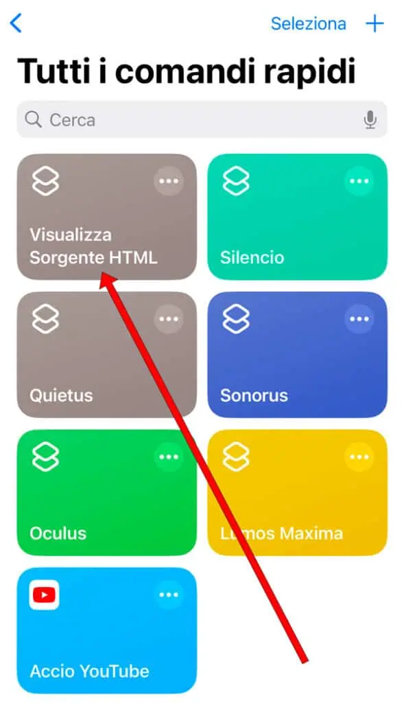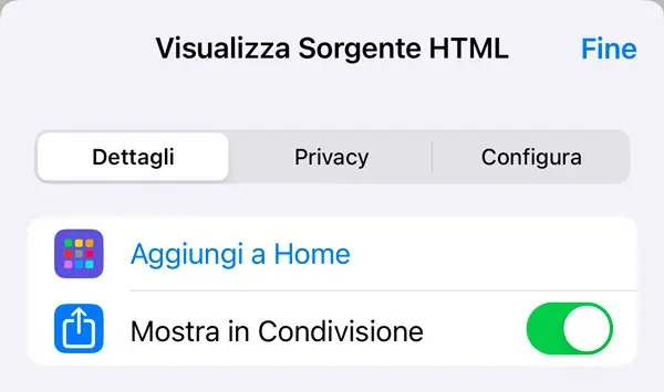 Creare un Comando Rapido per visualizzare il sorgente HTML