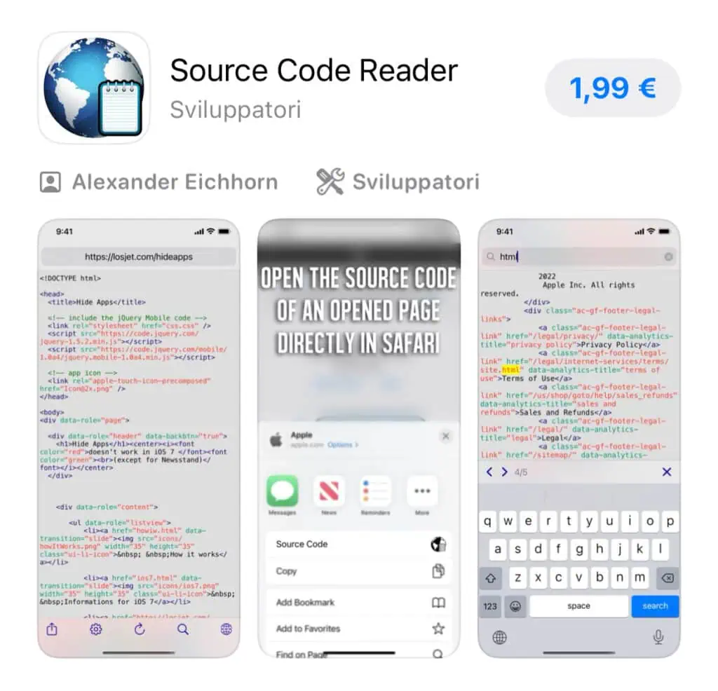 Come detto ci sono diverse alternative per visualizzare il sorgente di una pagina web sui dispositivi mobili Apple. Ecco alcune delle opzioni piรน popolari tra quelle disponibili sull’App Store: