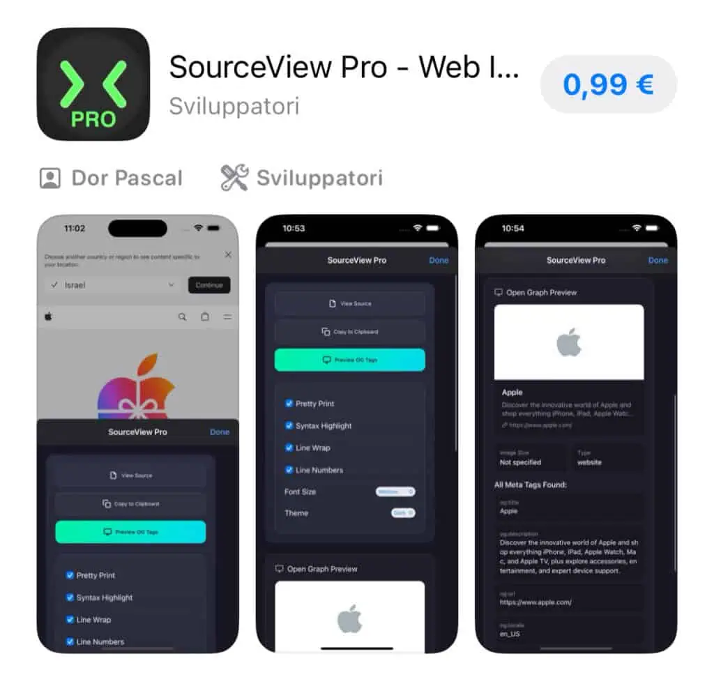 SourceView Pro รจ disponibile su App Store al prezzo di 0,99 USD e richiede iOS 15.0 o versioni successive.
