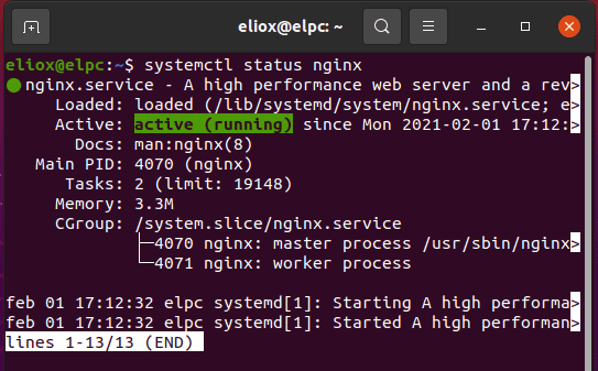 Se come atteso NGinx dovesse essere effettivamente attivo, l’output conterrร la notifica โActive: active runningโ che ne certifica l’avvio e il funzionamento.