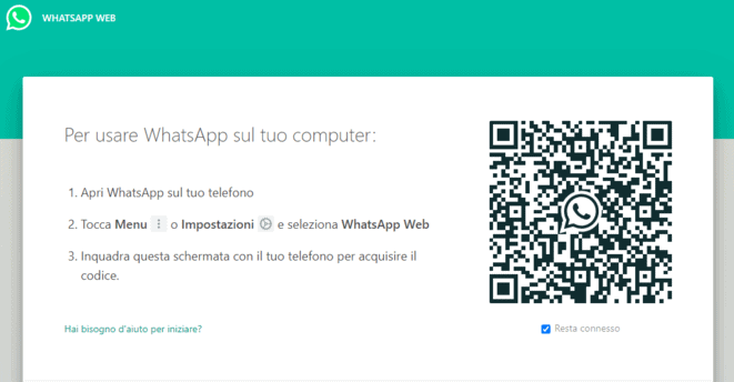 WhatsApp Web รจ innanzitutto una pagina Internet (quindi utilizzabile da browser) attraverso la quale un utente puรฒ autenticarsi senza utilizzare il proprio numero di telefono che รจ invece un requisito necessario nel caso in cui si usi l’applicazione da cellulare. In questo caso infatti il login avviene tramite un codice QRcome quello mostrato nell’immagine proposta di seguito.