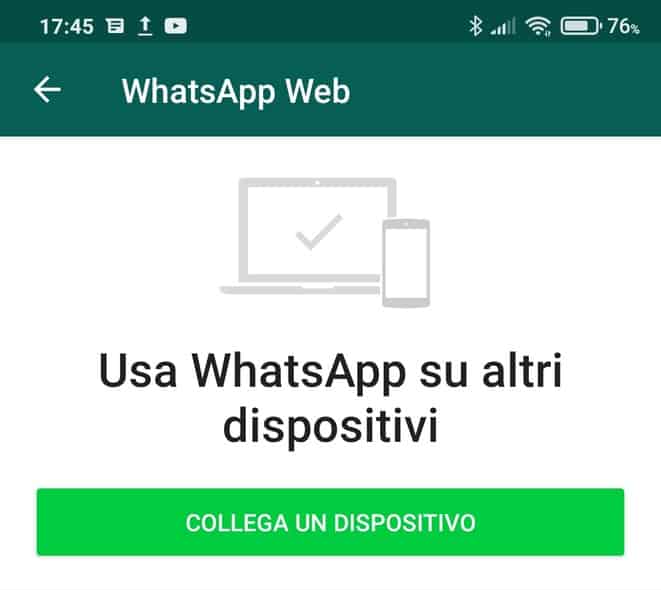 Una volta attivato il collegamento tra l’applicazione mobile e il dispositivo attraverso cui si desidera accedere a WhatsApp Web, se si desidera continuare ad utilizzare quest’ultima il cellulare deve rimanere sempre acceso e connesso alla Rete, diversamente la sessione iniziata nel device collegato verrร interrotta.
