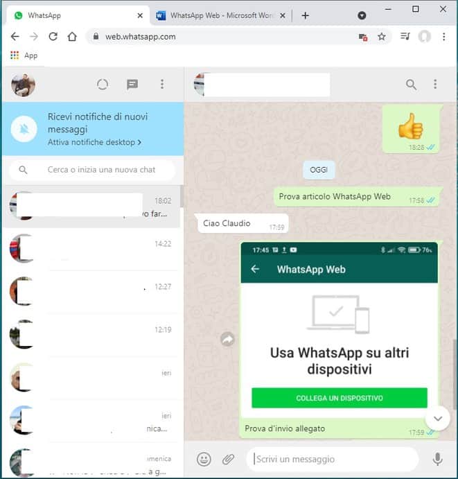 Se tutto dovesse andare per il meglio, si potrร accedere finalmente all’interfaccia di WhatsApp Web e alle sue funzionalitร .
