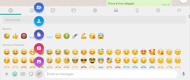 Sono inoltre supportati gli emoji cosรฌ come gli allegati di vario tipo che vanno dalla condivisione dei contatti ai documenti, dai video (con autorizzazione di accesso alla WebCam) fino alle immagini.
